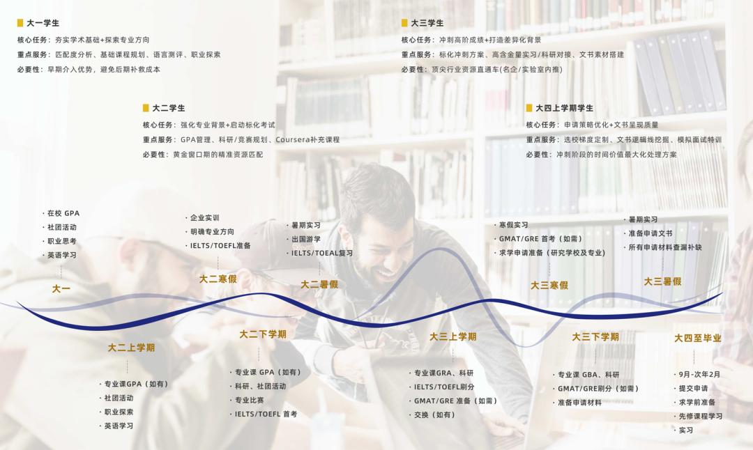 留學申請是一場持久戰,每個階段都很重要,只有一步一個腳印,做好每個階段的規劃和準備,才能在申請季中脫穎而出,實現自己的留學夢想。優越君在這里給大家po一張完整的大一至大四階段的規劃圖??趕緊保存起來吧!