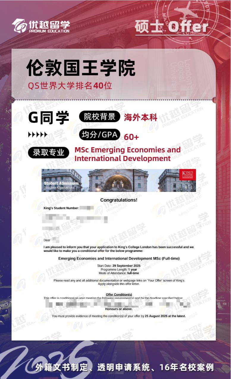 如果想申請 KCL,優(yōu)越留學(xué)建議優(yōu)先考慮剩余名額較多的社科類或交叉學(xué)科項(xiàng)目,比如公共政策、數(shù)字人文等。以公共政策專業(yè)為例,其課程設(shè)置融合了多學(xué)科知識(shí),就業(yè)前景廣闊,且申請競爭相對較小。在準(zhǔn)備申請材料時(shí),優(yōu)越留學(xué)的文書團(tuán)隊(duì)能幫助同學(xué)們深度挖掘自身優(yōu)勢,突出與專業(yè)的匹配度,大大提升申請成功率。像之前有位同學(xué),本科專業(yè)與公共政策關(guān)聯(lián)不大,但在優(yōu)越留學(xué)文書老師的指導(dǎo)下,通過闡述在相關(guān)實(shí)習(xí)和項(xiàng)目中的經(jīng)歷與收獲,成功拿到了 KCL 公共政策專業(yè)的 offer。