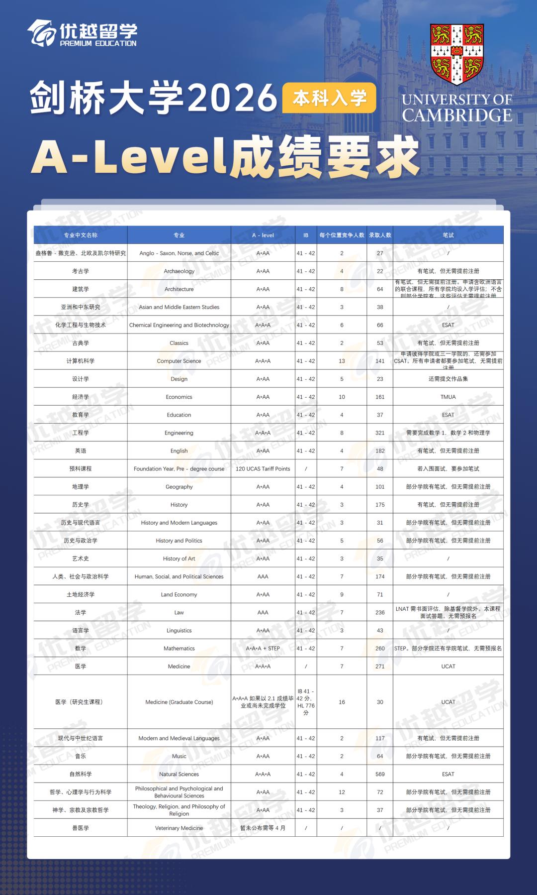 以上是【【英國本科】劍橋大學新規!中國區考生筆試受限,留學路何去何從?】相關的全部內容,查看更多【英國本科申請】相關資訊可前往【優越留學】首頁!詳細申請規劃及方案定制請預約優越留學顧問為你一對一解答!