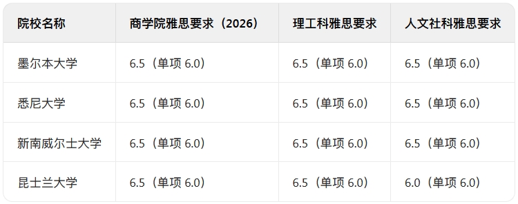 墨爾本大學更關注申請者的綜合背景,雅思 6.5 分達線后,建議將精力轉向實習或學術項目(如參與教授的商業分析課題)。