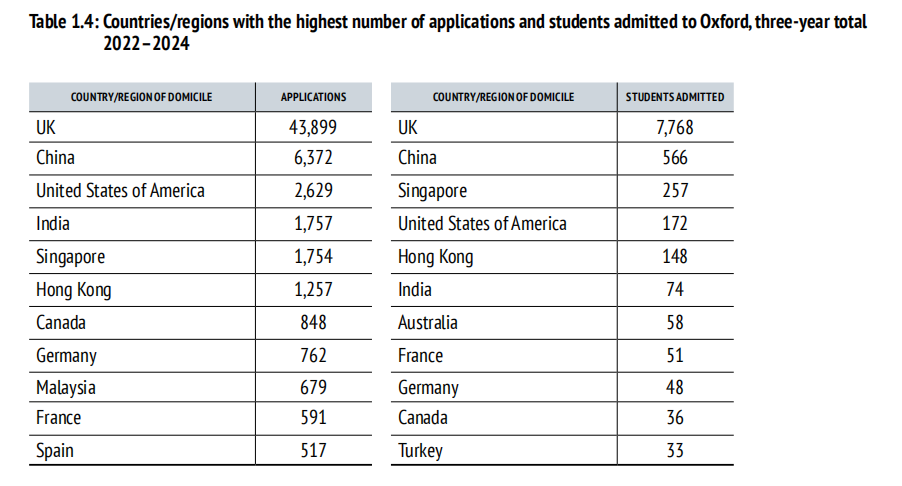 全球地位:中國(guó)內(nèi)地為牛津最大國(guó)際生源地,申請(qǐng)量與錄取量均遠(yuǎn)超美國(guó)、印度等國(guó)家,競(jìng)爭(zhēng)激烈程度持續(xù)走高。