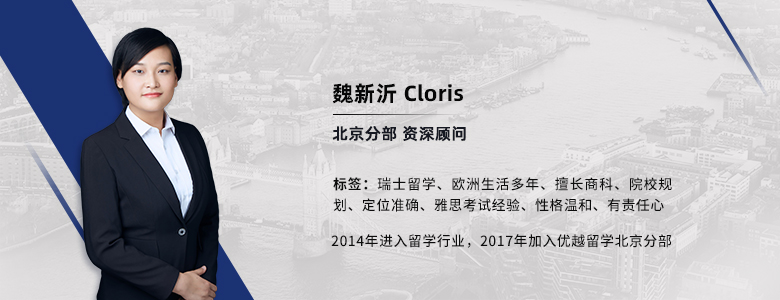 優越留學 Cloris老師畢業于瑞士知名大學,擁有5年英國留學行業工作經驗,在歐洲多年的學習與生活,深入了解了英國及歐洲院校的教育體系,對英國的教育體制以及風土人情極為了解,能根據學生的背景條件與興趣方向制定全面合理的以及個性化的留學方案,能夠深切的體會到留學學生與家長的感受,憑借著對院校的精準把握,后期流程完善的服務,她成功幫助許多學生申請到英國牛津劍橋,帝國理工,倫敦政經,倫敦大學學院,愛丁堡,曼大,華威等英國頂級名校。