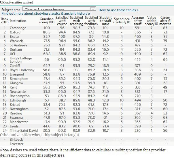 近日,2016《衛報》版英國大學排名已出,雖然各大學位次的變化不一,但也給我們在英國留學的學校選擇方面提供了很多值得參考的消息。同時,《衛報》更根據各學校的學術等各方面表現進行了專業排名。