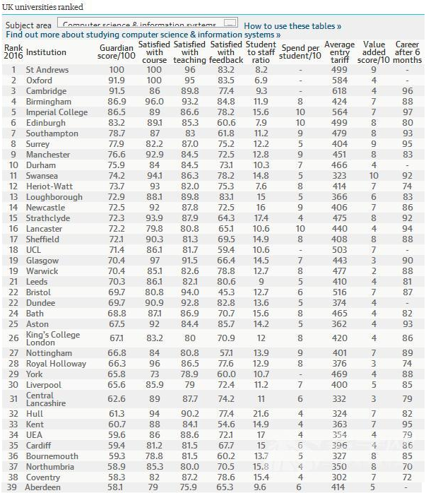 近日,2016《衛報》版英國大學排名已出,雖然各大學位次的變化不一,但也給我們在英國留學的學校選擇方面提供了很多值得參考的消息。同時,《衛報》更根據各學校的學術等各方面表現進行了專業排名。