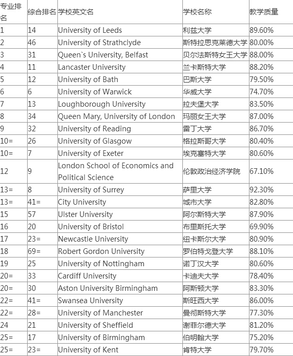 2016TIMES英國大學(xué)會(huì)計(jì)與金融專業(yè)排名