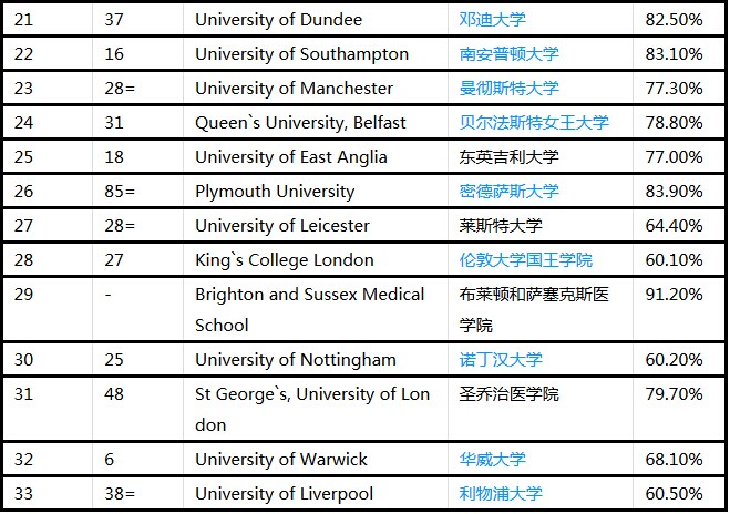 英國大學排名信息