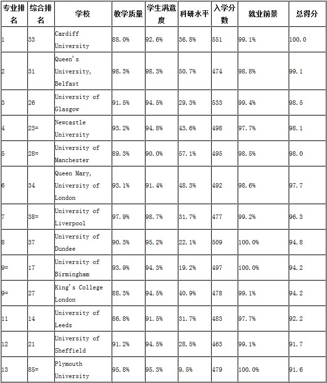 當前位置 :英國留學->英國大學排名信息->2016年TIMES英國大學牙科專業排名