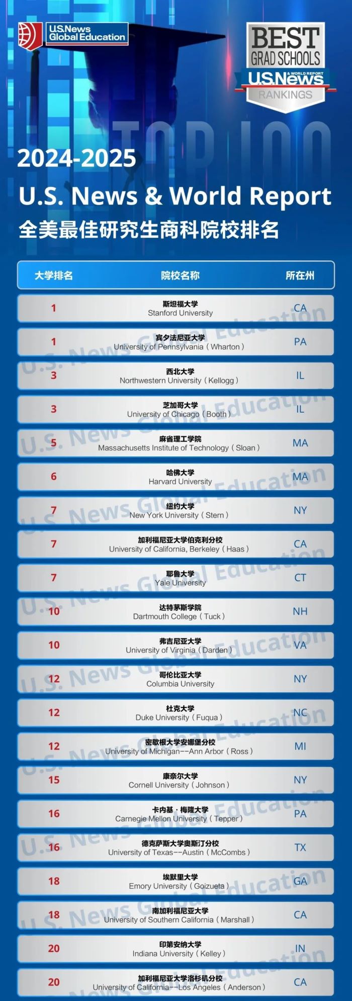 北京時間4月9日,U.S. News & World Report正式發布了最新的「U.S. News & World Report 2024-2025 全美最佳研究生院校排名」,本次排名主要基于2024年度全美最佳研究生院校數據,并對部分排名因素與權重做了調整。準備美國留學申請的同學和家長們需要注意更新信息了~