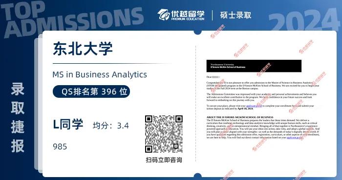 24fall重磅offer來(lái)襲!恭喜優(yōu)越學(xué)員L同學(xué)順利斬獲美國(guó)top名校東北大學(xué)錄取,一起來(lái)看看吧!