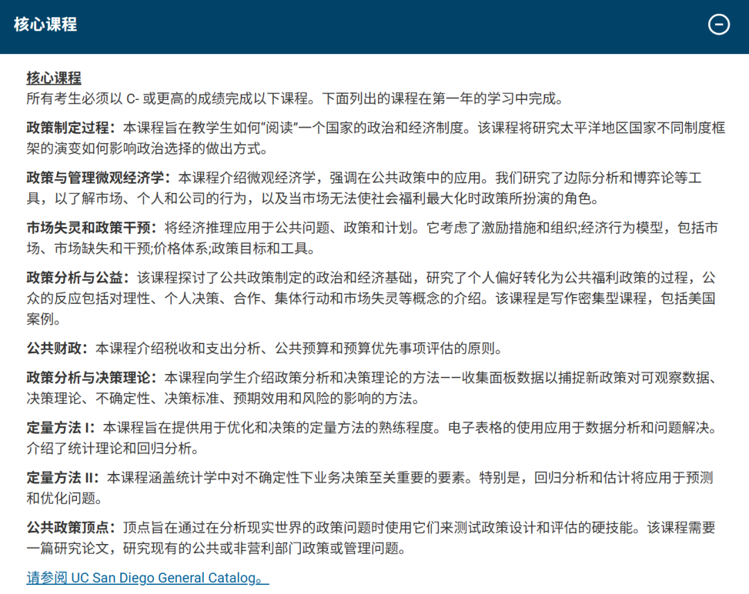 此外,UCSD在全球最佳大學中排名第21,全美最佳國立大學排名第29,全美頂尖公立大學排名第6。MPP是一個嚴格、專注、以技能為導向的項目,旨在培養從事政策分析職業的學生,適合那些想要分析公共問題并提出改進建議的學生。